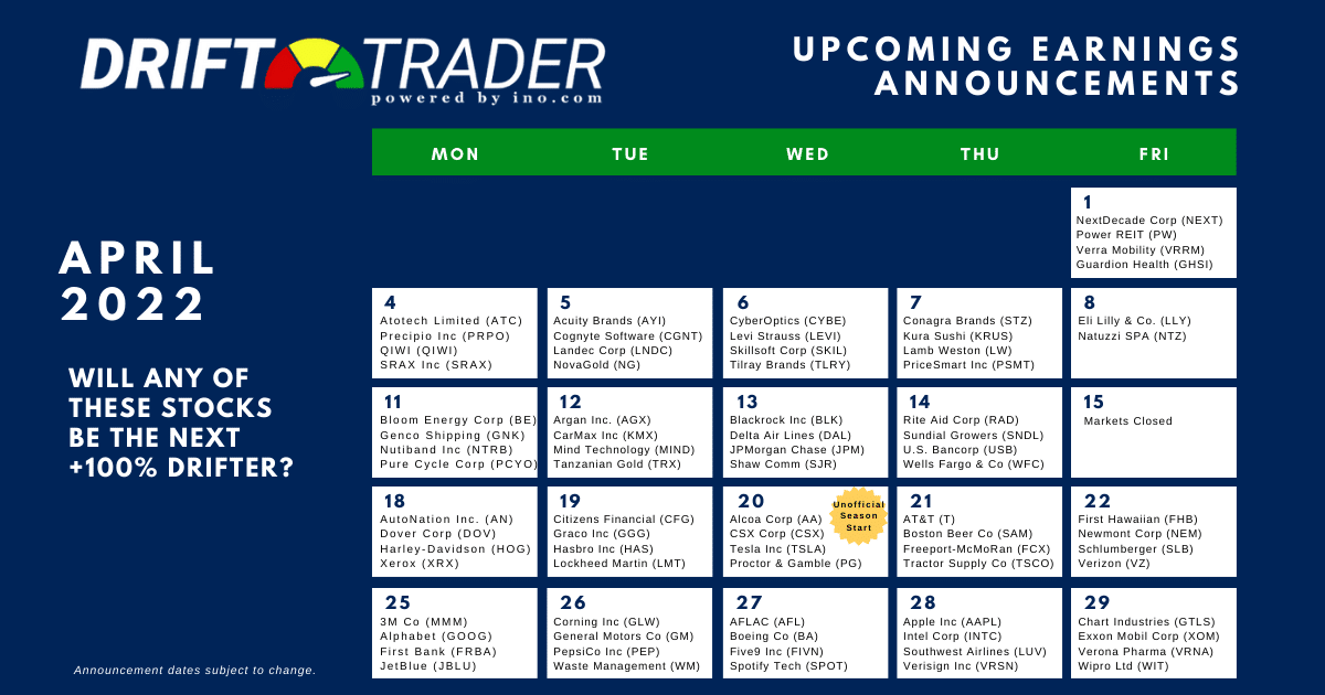 Earnings Calendar April. The table below is a calendar list view of publicly traded stocks that have released their earnings reports. 246 rows use our earnings calendar to track forecasts for quarterly and annual.